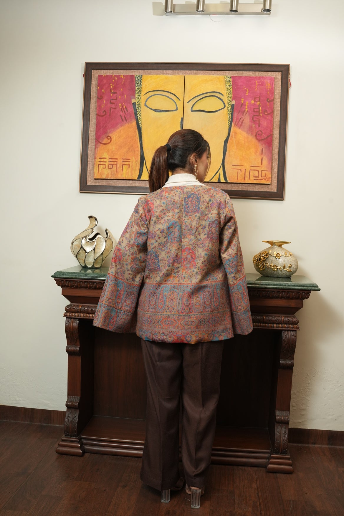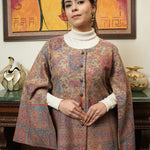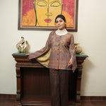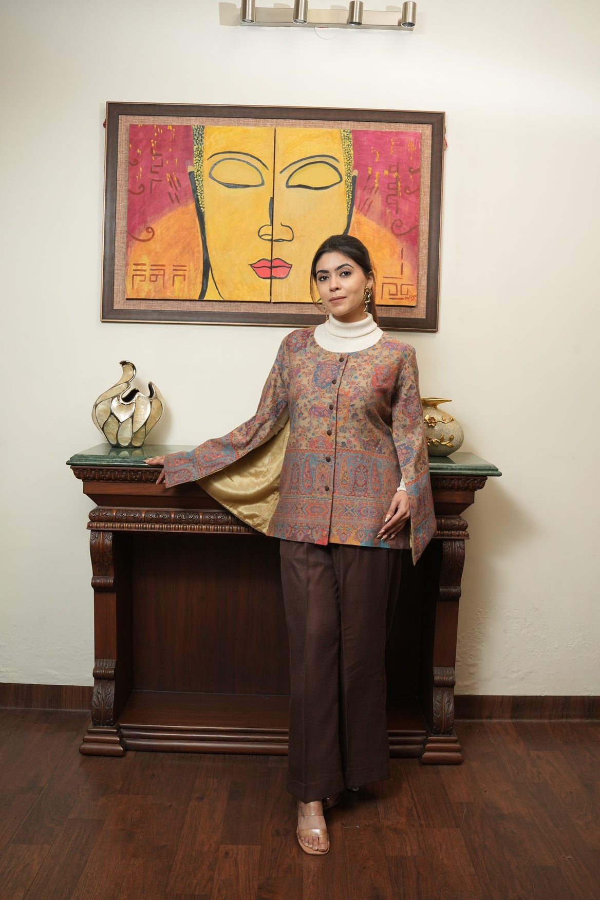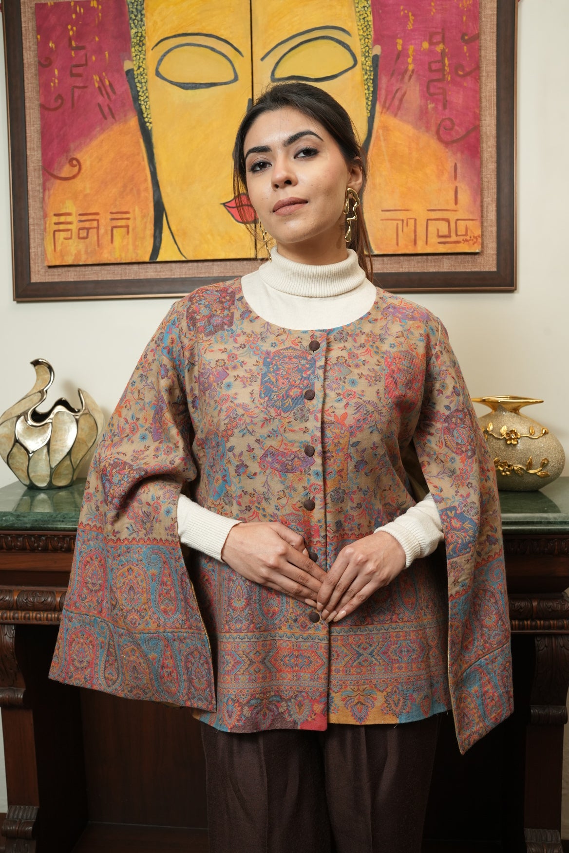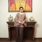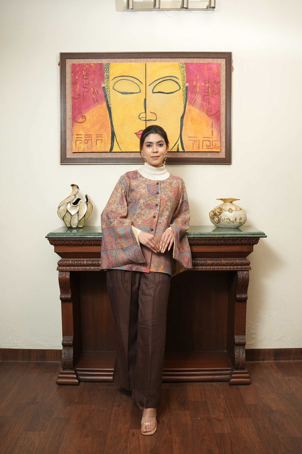 Beige & Brown Pashmina Coord Set with Flared Sleeves