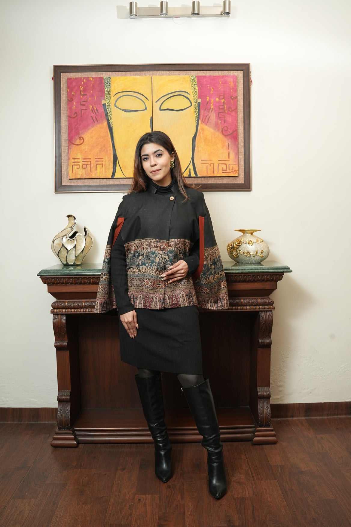 This ensemble is perfect for winter festivities, formal events, or any occasion where sophistication meets comfort