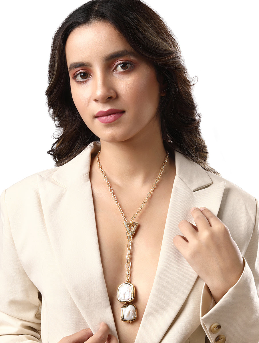 Gold Plated Handcrafted Necklace with Mother of Pearl