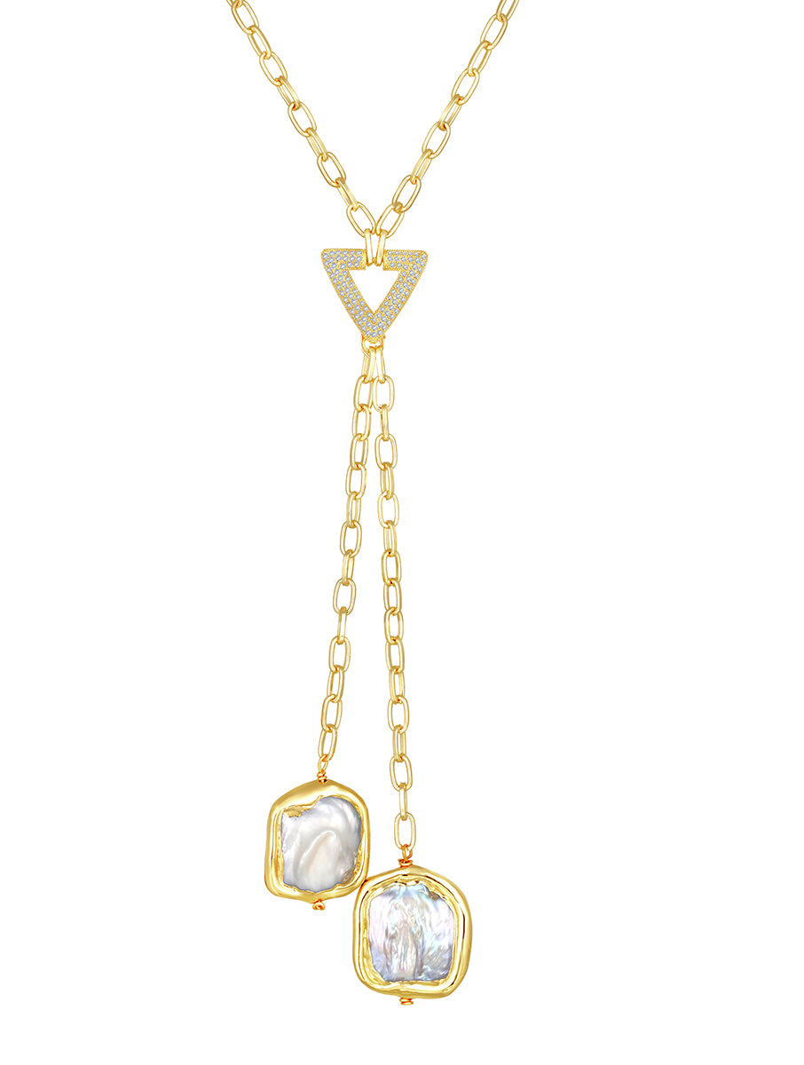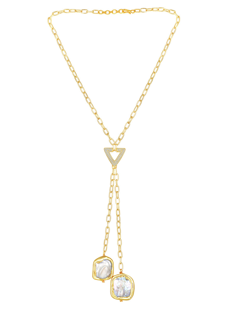 Material : Micron gold polished brass chain , Cz diamond ball, Mother of pearl.