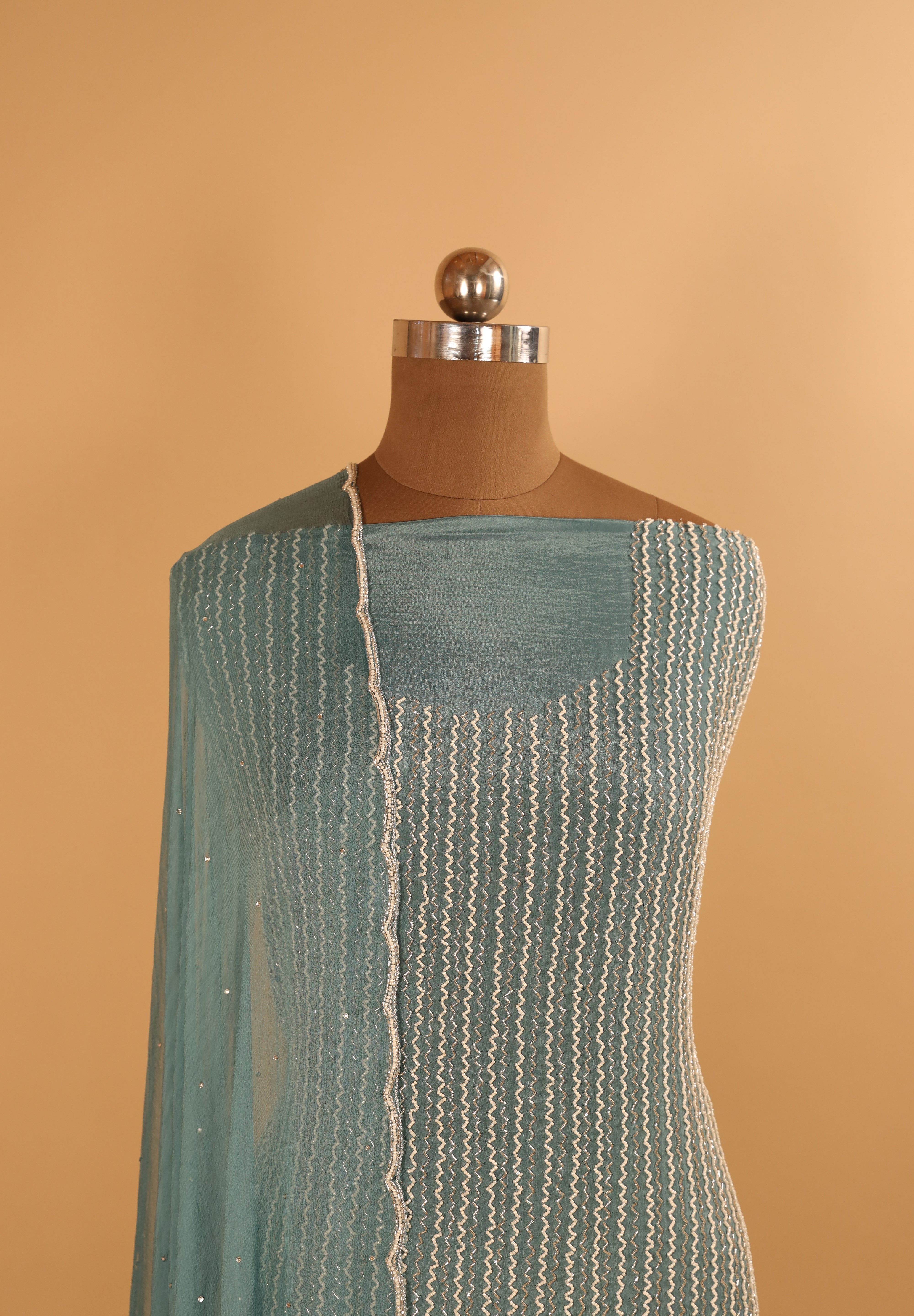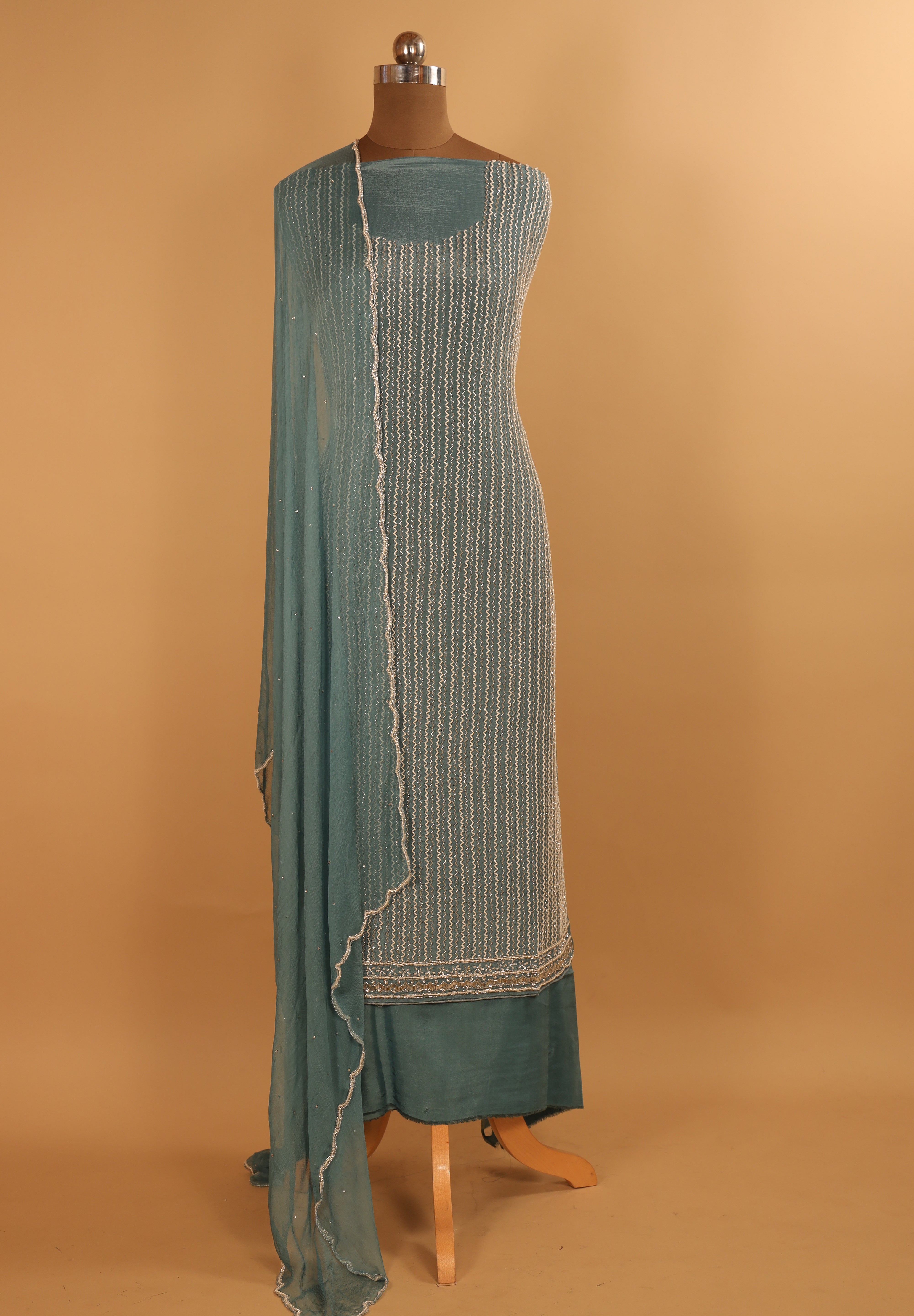 Hand Embroidered chinnon Blueish Grey Suit Dupatta