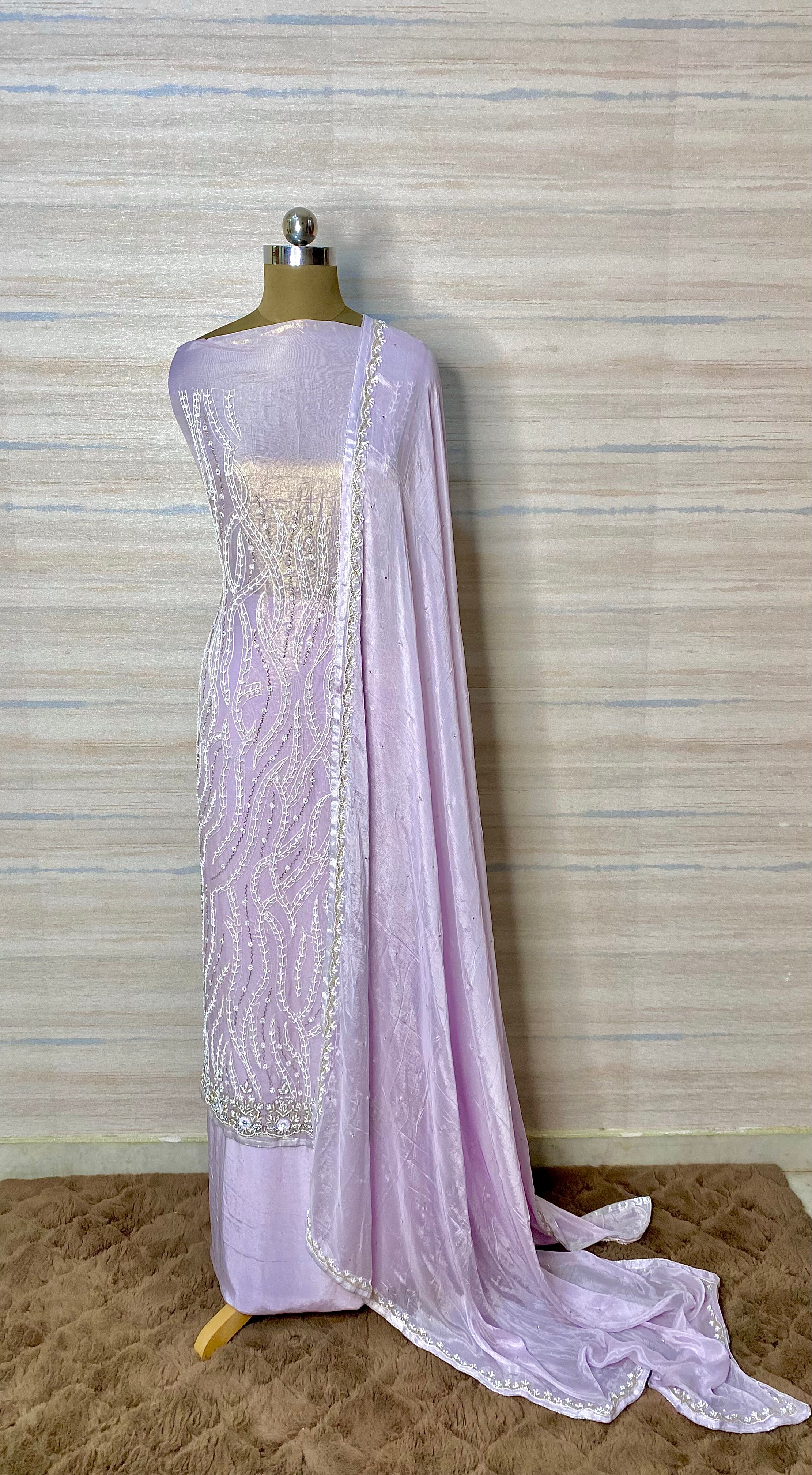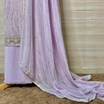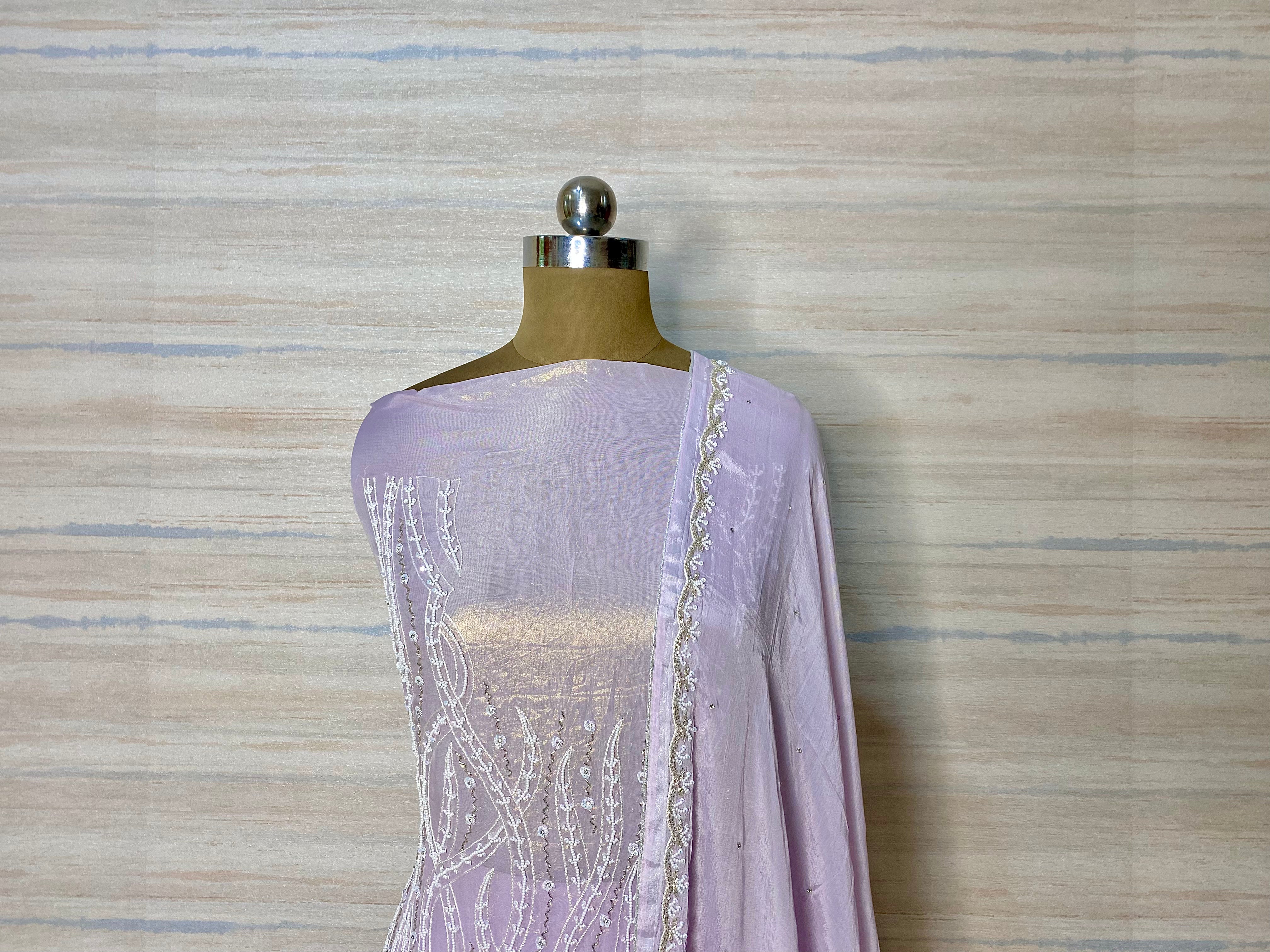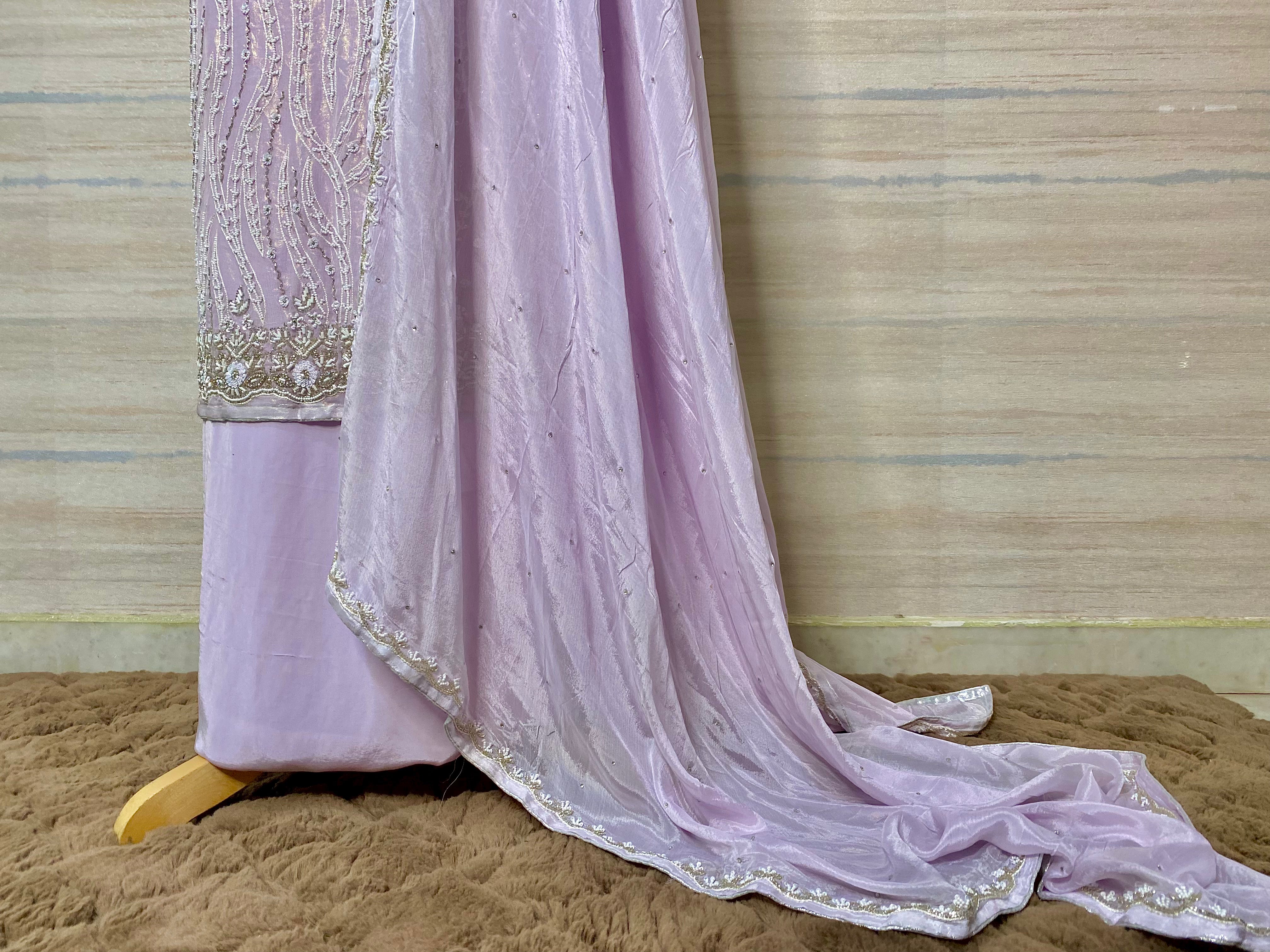 Party wear hand embroidered lilac tissue organza suit dupatta