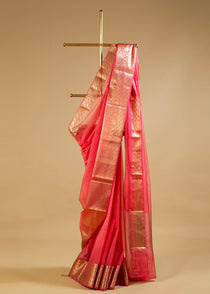 3. For the Engagement: Peach Pink Banarasi Organza Saree