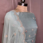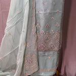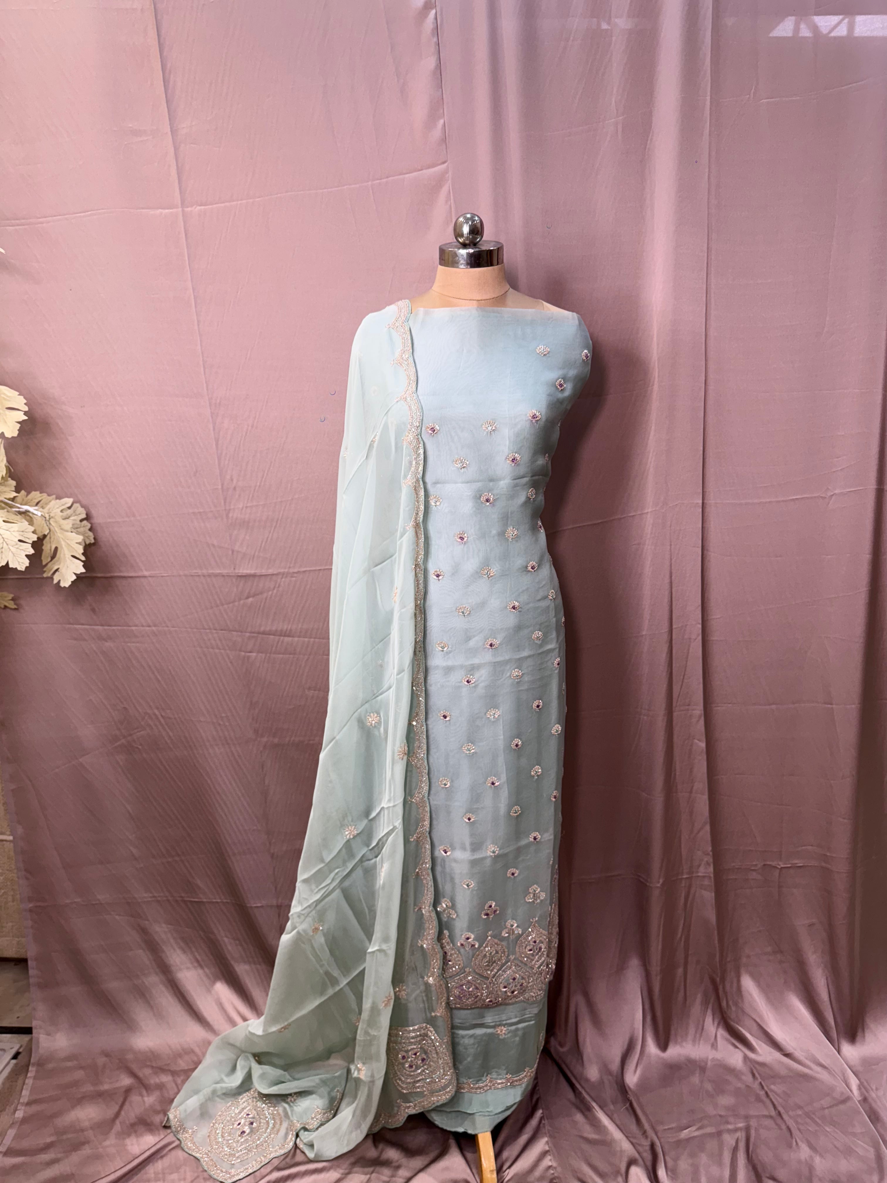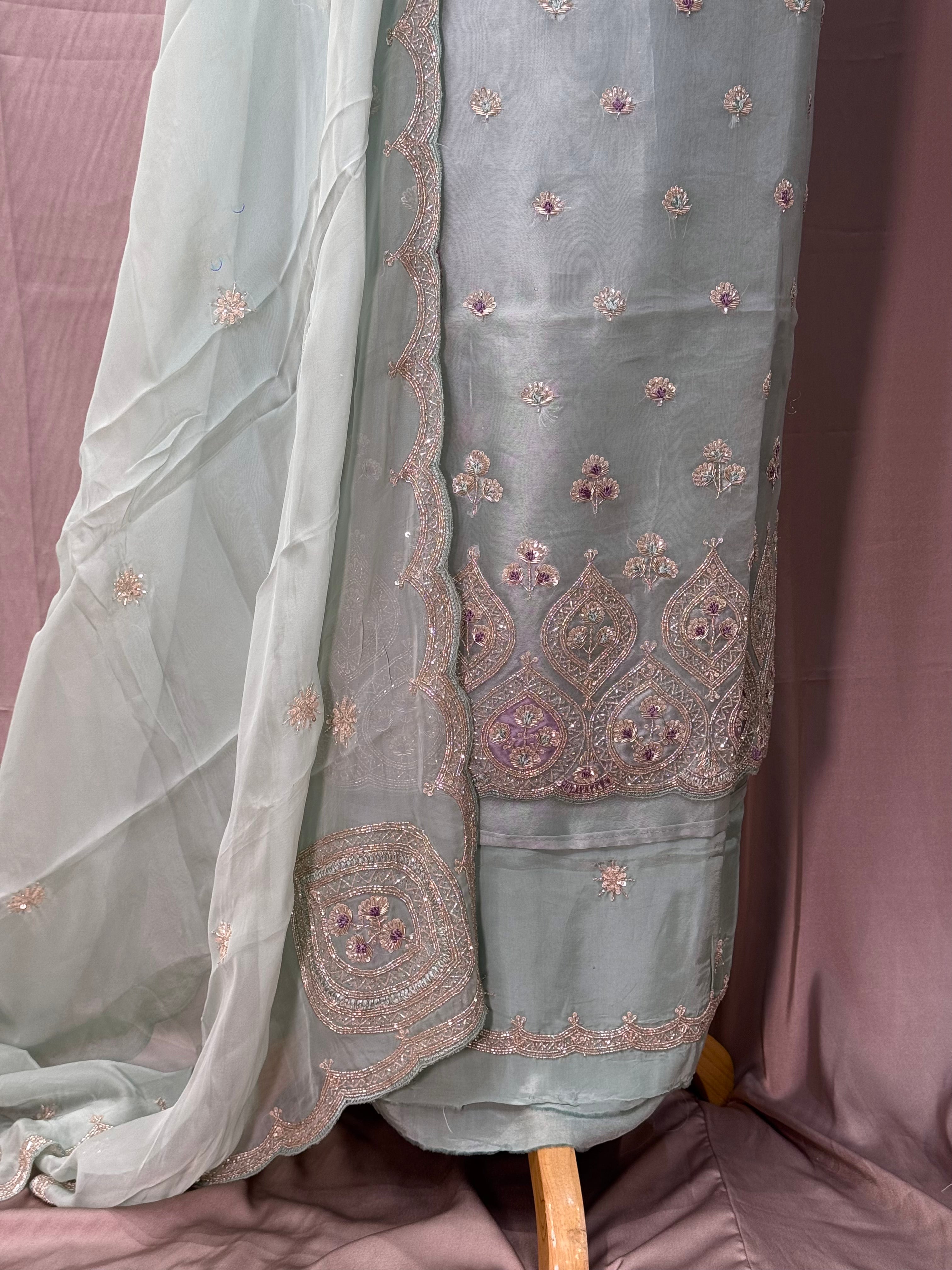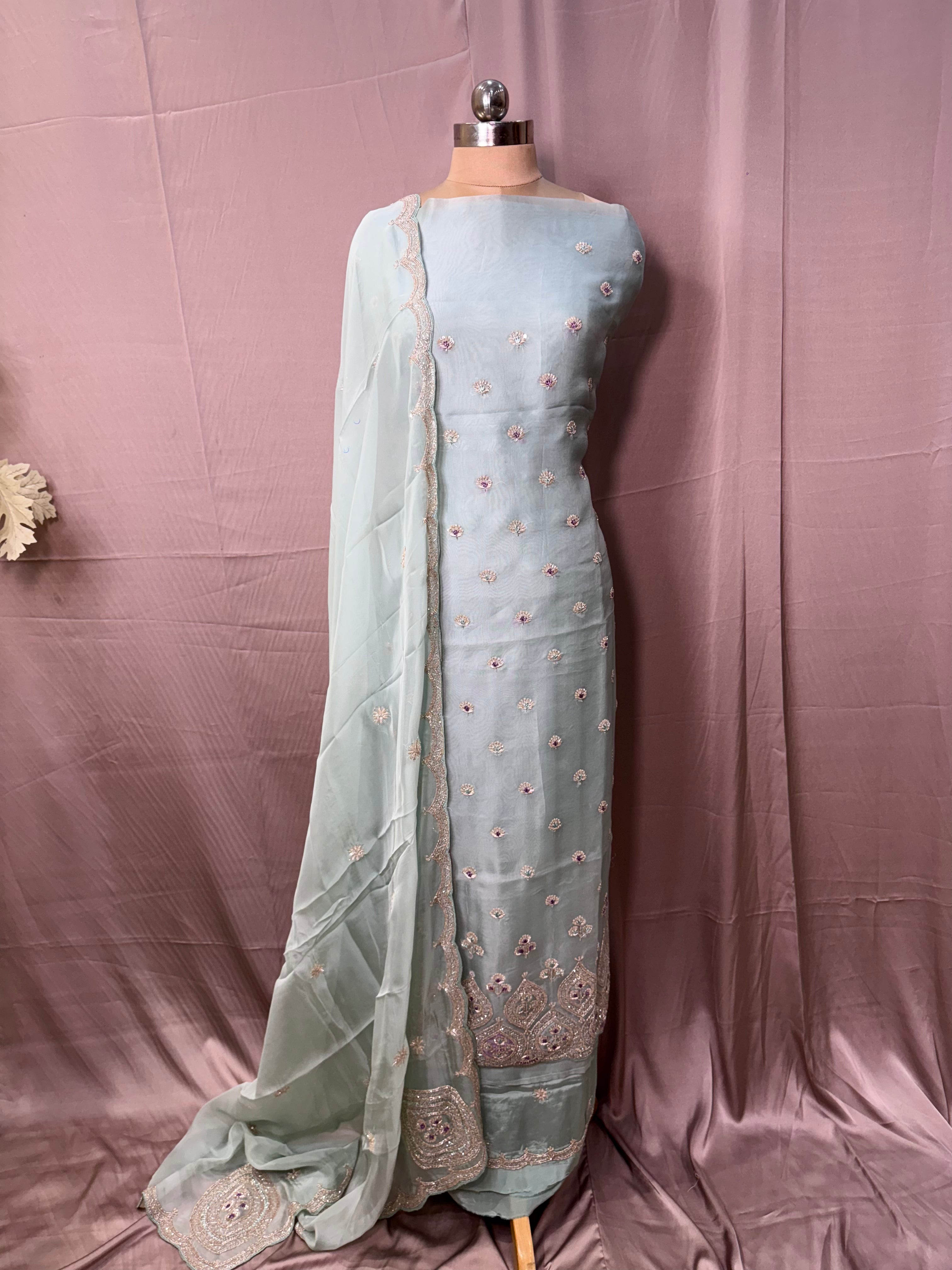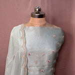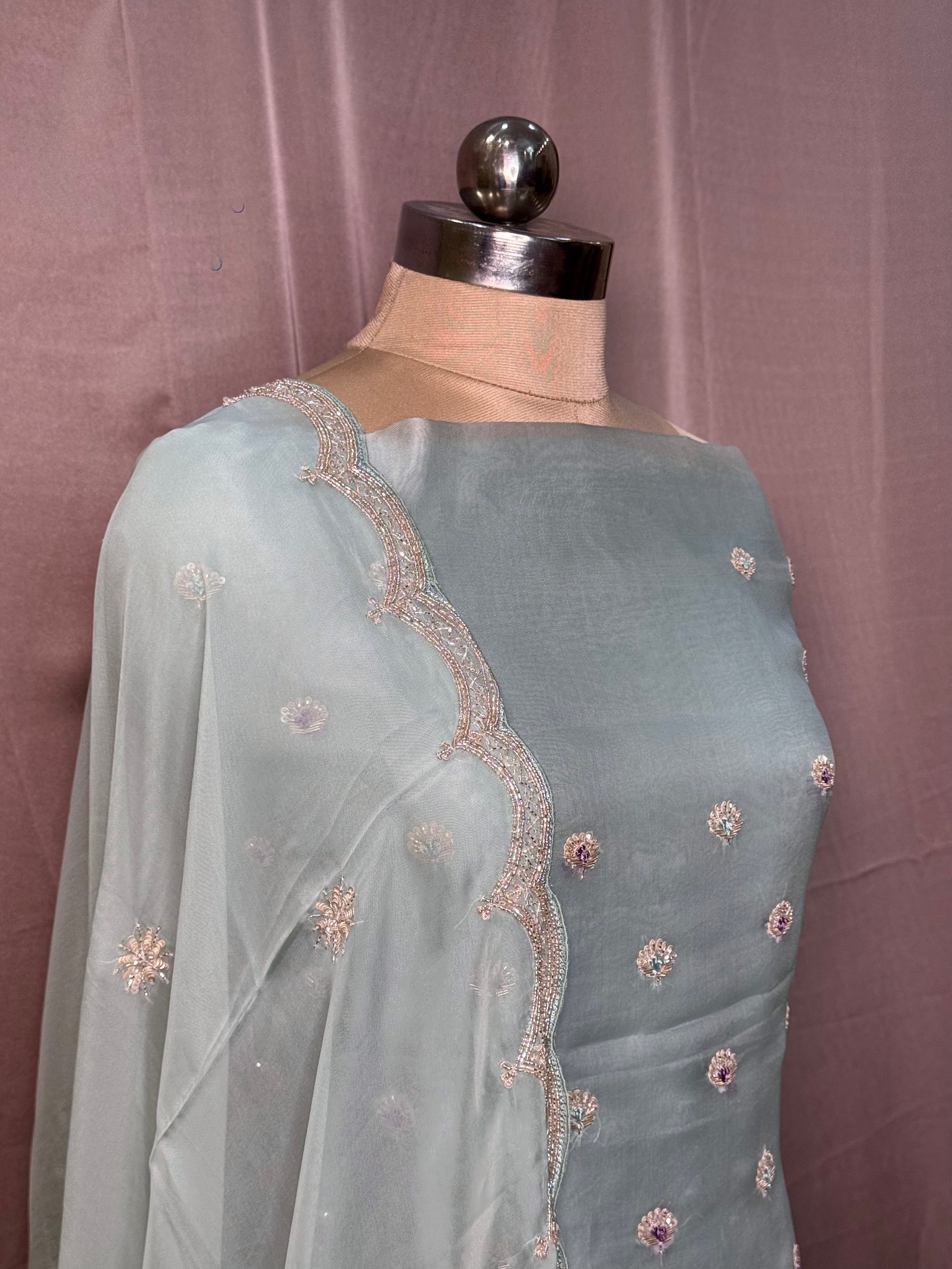 Ice Blue Hand-Embroidered Tissue Crepe Suit with Tissue Georgette Dupatta